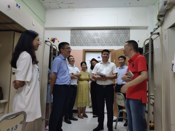 为确保我院新生能够舒适入住,及时解决新生们在开学季遇到的寝室生活问题,帮助他们更快融入校园生活,2019年9月8日下午17:00,学院院长陈中祝、党总支书记/副院长李忠彬、副院长唐典勇、党政办公室孟江平、教学办公室罗洁及2019级辅导员王俊、辅导员张益梅对所有2019级新生寝室逐一走访慰问。